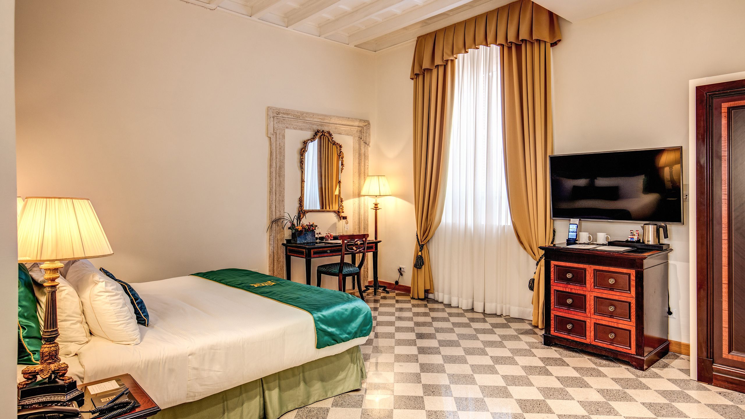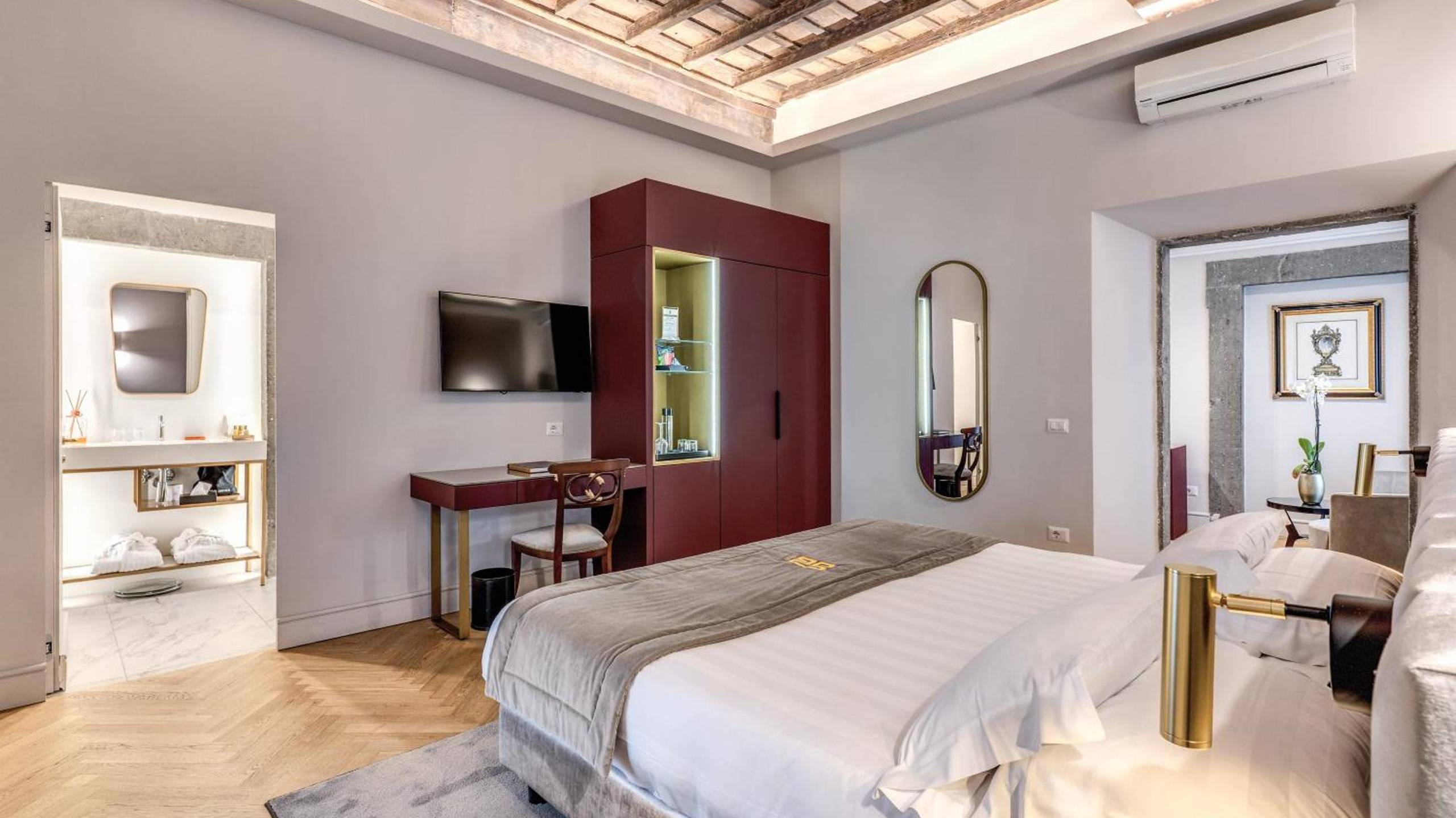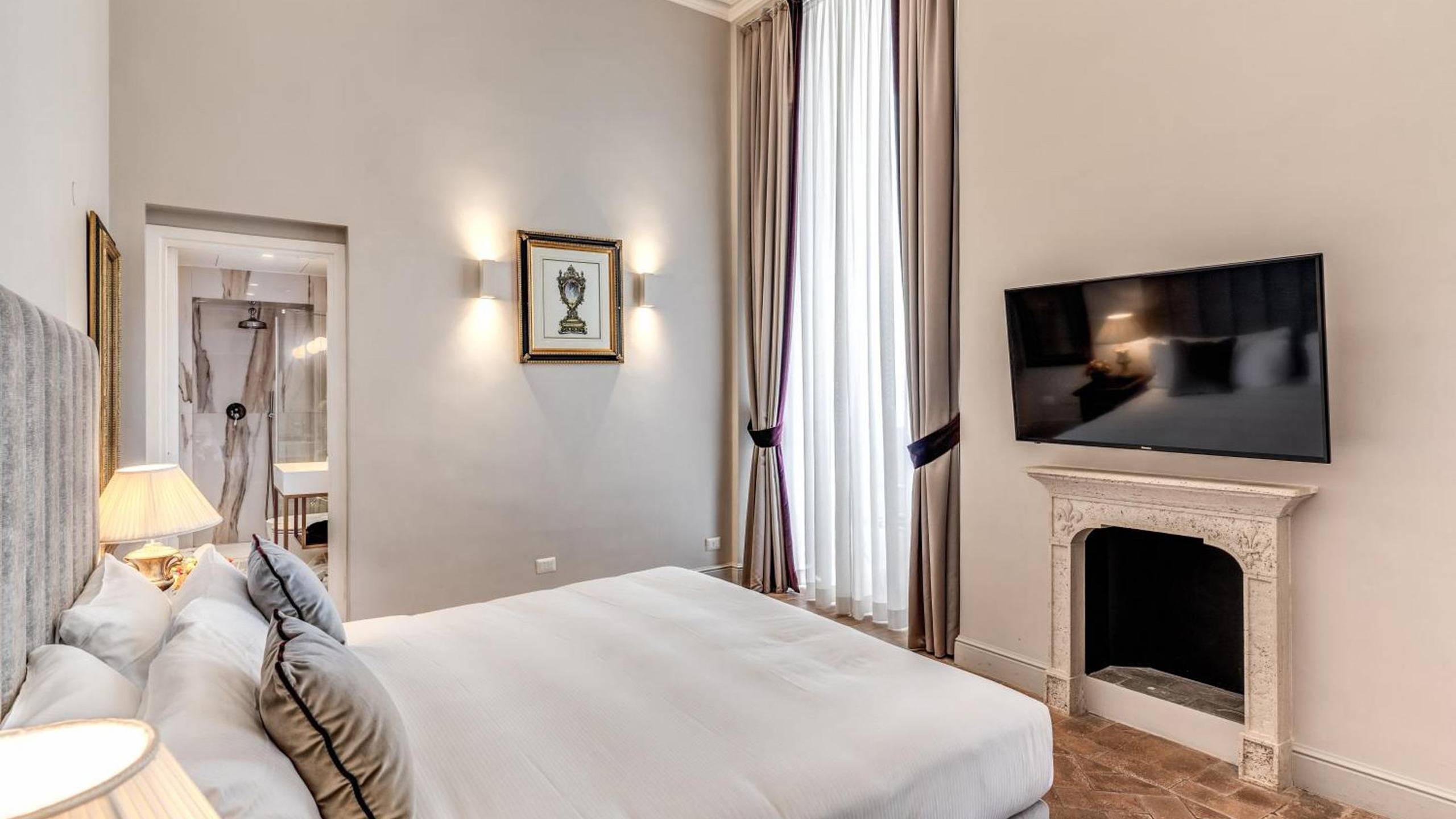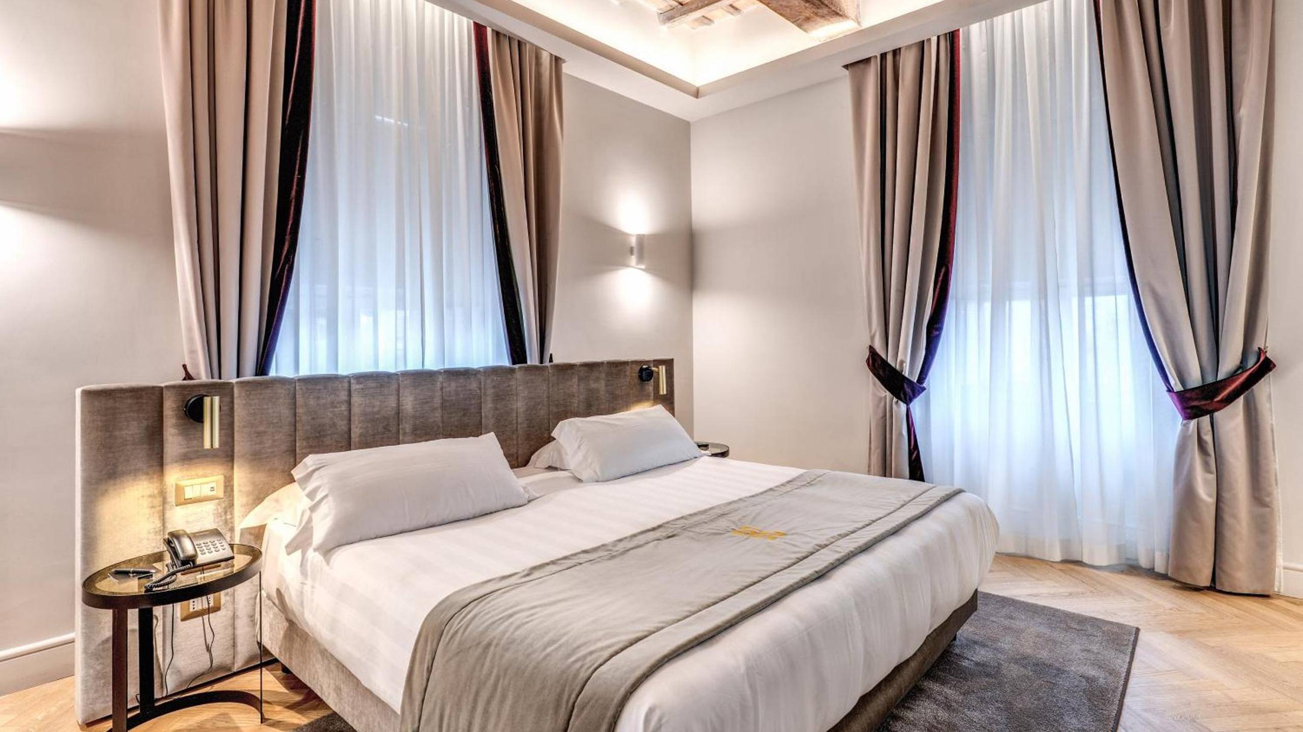 Elegant and intimate, they feature extra-comfort beds, refined interiors and the authentic atmosphere of a Baroque residence now opening its doors to its most privileged guests. The Superior Suites preserve original elements of the 17th-century palace designed by Francesco Borromini, the favourite architect of Pope Innocent X.