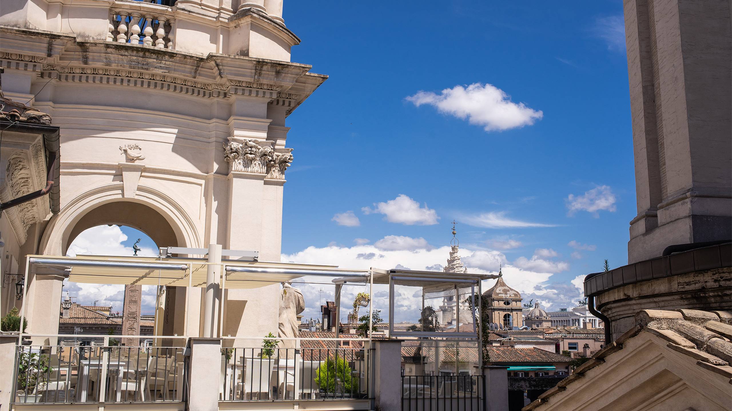 Se trata de suites magníficamente amuebladas que poseen las características de la categoría que las precede, pero adornadas por las vistas hacia uno o más rincones de la ciudad eterna [...]