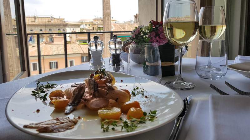 В художественной галерее Borromini на четвертом этаже находится ресторан «Terrazza Borromini», который также доступен для гостей отеля и предлагает меню, вдохновленное римскими традициями, с доступом к сырью из всех регионов Италии. Окна залов ресторана выходят на Площадь Навона. Залы ресторана украшены фресками Бернини, которые обрамляют перспективу на знаменитые фонтаны на площади.