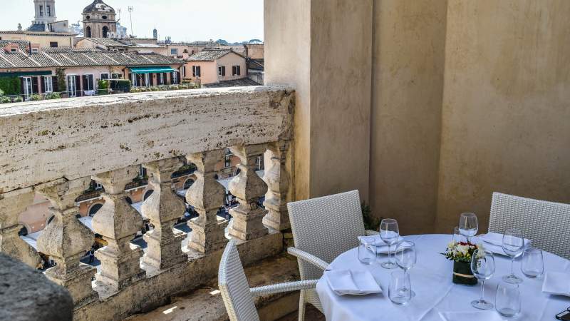 Самая высокая терраса Палаццо Памфили была переименована некоторыми из наших самых преданных клиентов «Великая красота» (La grande bellezza). Интимная и эксклюзивная обстановка, которая доступна только в определенное время года для немногих счастливчиков и только по предварительному заказу. Обстановка захватывает дух: отсюда вы сможете оценить вечный город во всей его необъятной красоте.