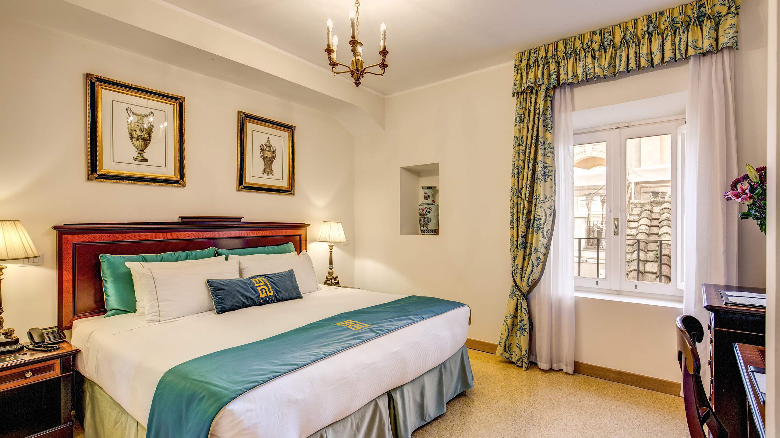 В убранстве номеров категории Супериор Сьют присутствуют первозданные элементы отделки здания, в котором находится отель Eitch, спроектированного Франческо Борромини, одним из самых знаменитых и экстравагантных представителей архитектуры римского барокко. Борромини был любимым архитектором Папы Иннокентия Х Памфили, который жаждал заполучить его в свою свиту и которому поручил строительство Коллегии Папы Иннокентия, где сегодня находится наш отель.